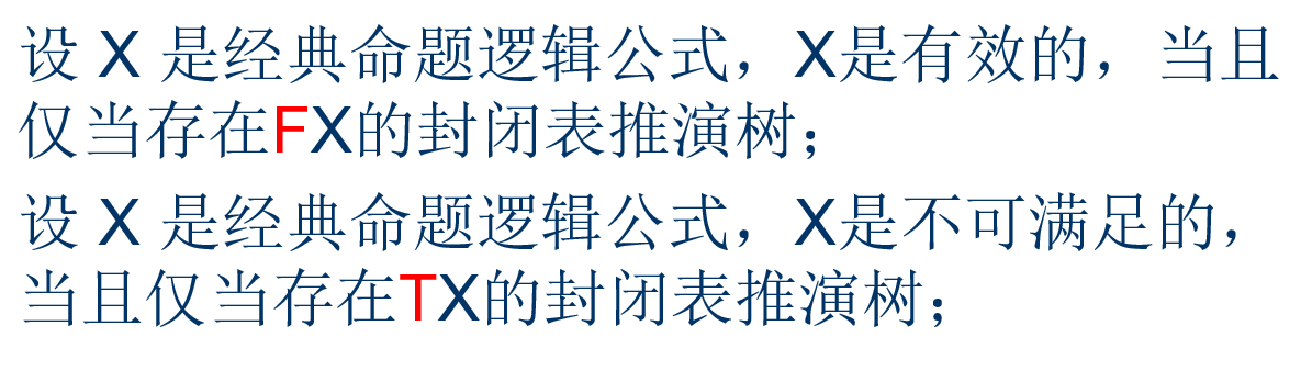 d.表推演(也可证明公式恒真、恒假、可满足性等;有命题的表推演以及一阶逻辑的表推演)