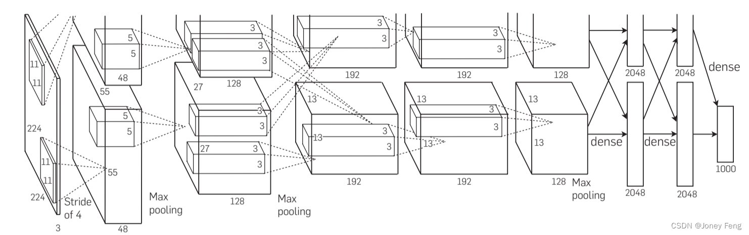 (4) 在全连接层的前两层使用了Dropout随机失活神经元操作以减少过拟合。