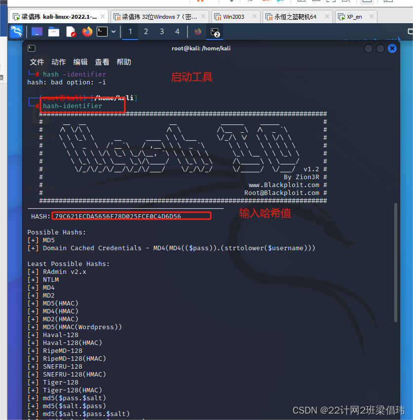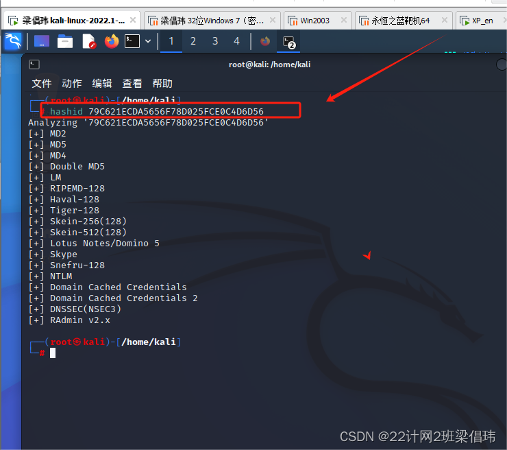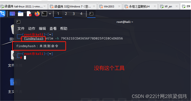 1、Kali中破解哈希值findmyhash工具的使用格式: