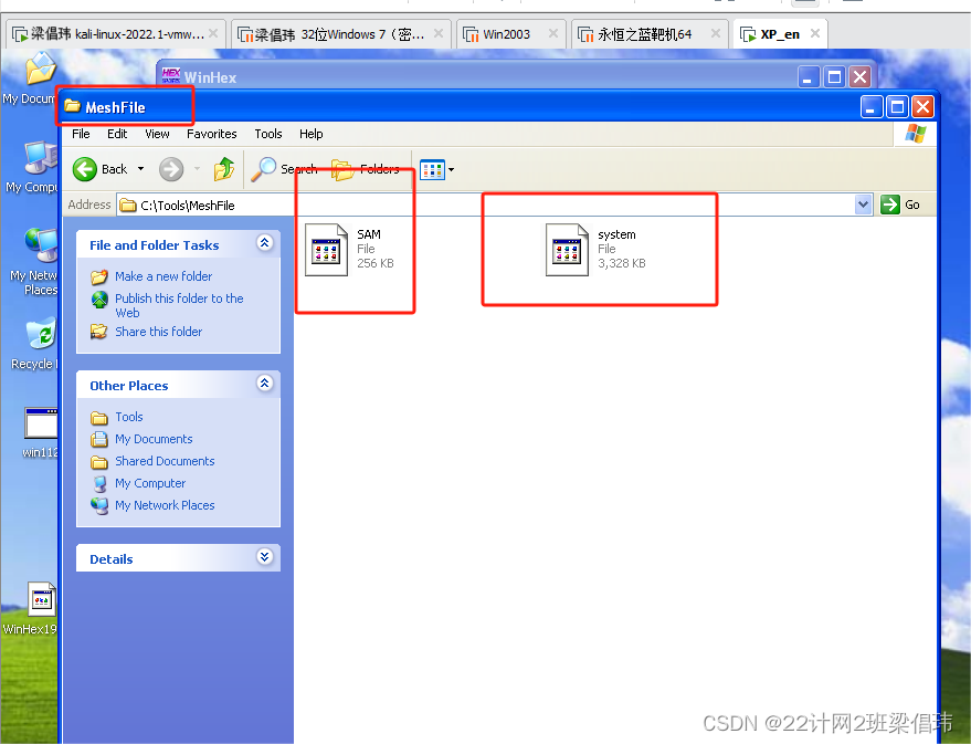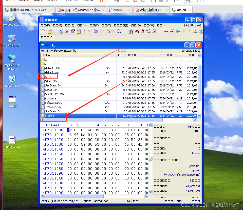 (1)使用WinHex工具复制Windows XP系统C:\Windows\system32\config\文件夹的两个存放密码的文件SAM和system