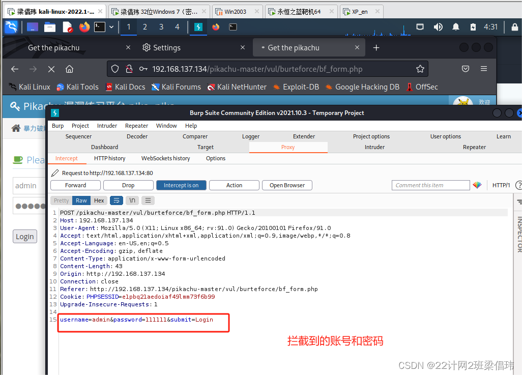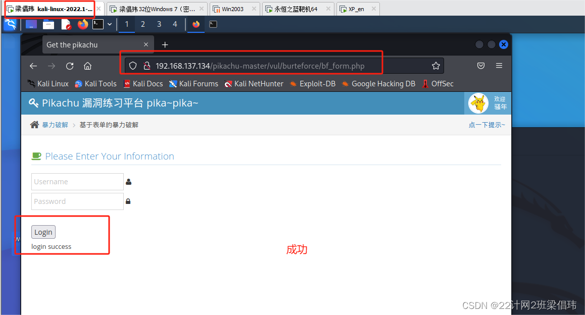 在kali虚拟机中登录Pikachu平台