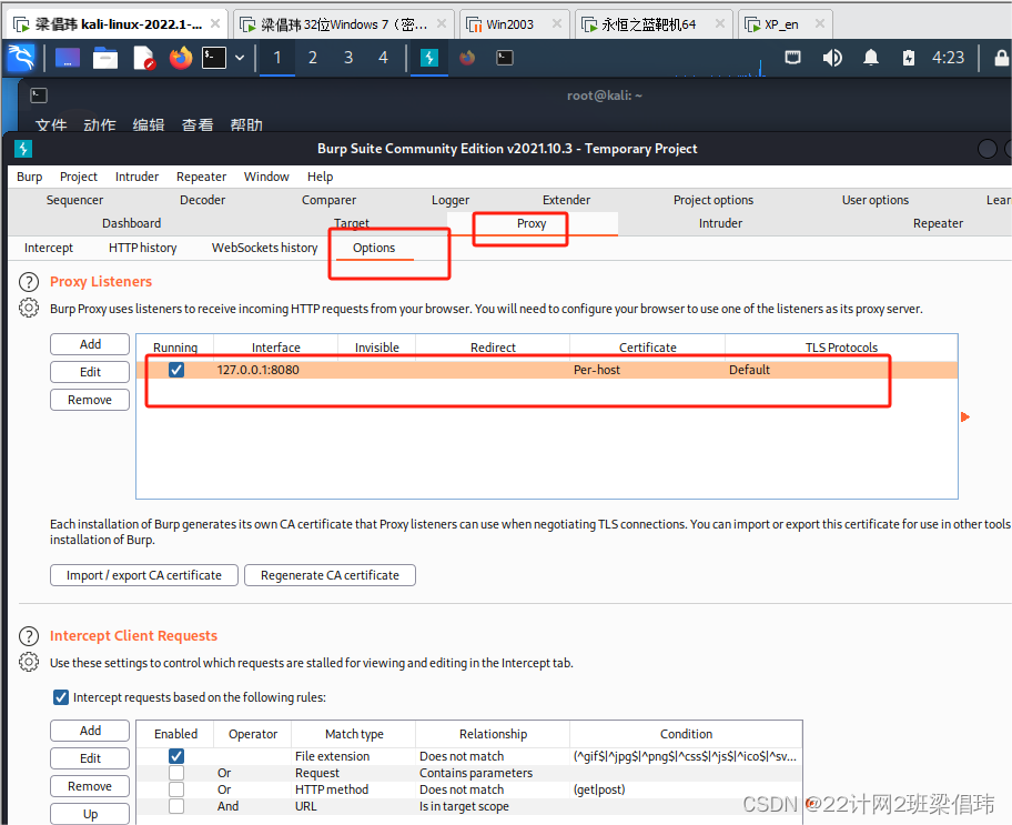 将burpsuite设置为代理工作模式