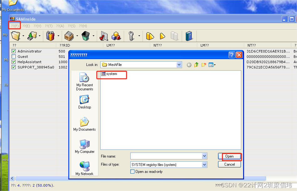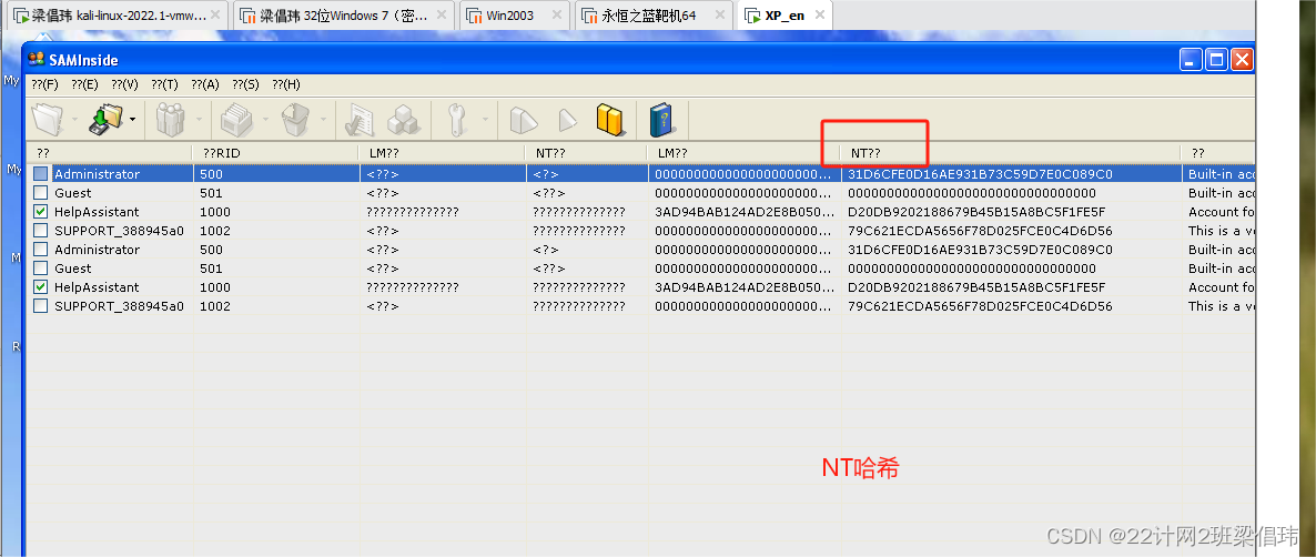 案例:利用上述网站和上节获得的NT哈希值破解密码。 1在SAMInside工具上获取NT哈希值