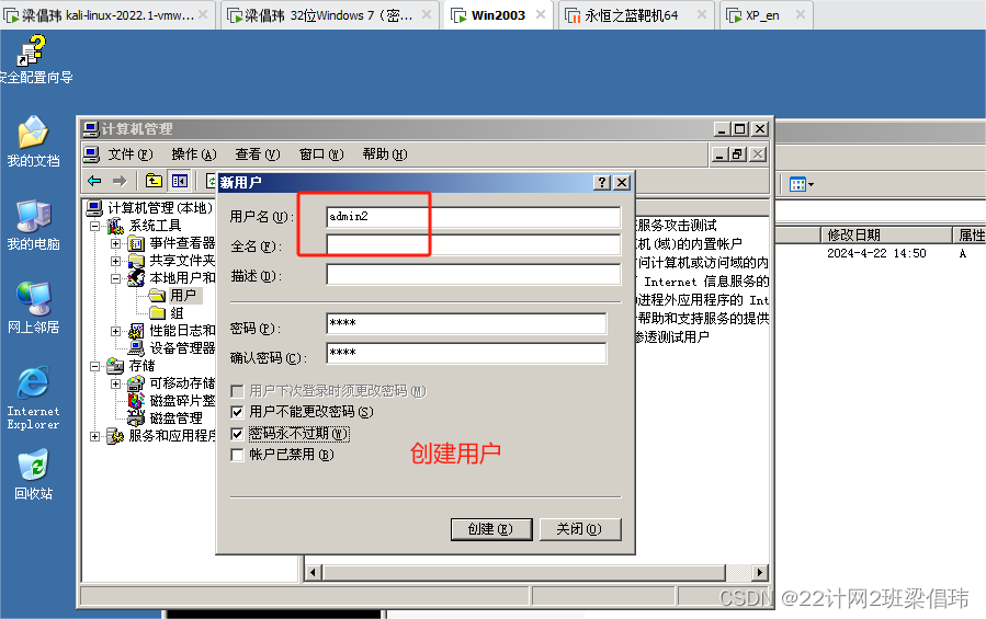 (0)在Win2003准备FTP服务器,IP为 192.168.137.131 (如:192.168.169.135),创建一个admin用户,密码为:abc123。