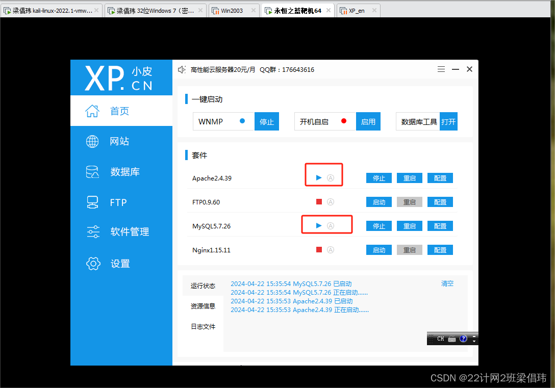 启动apache和mySQL服务即可。