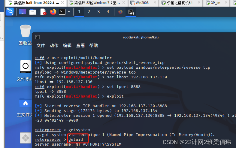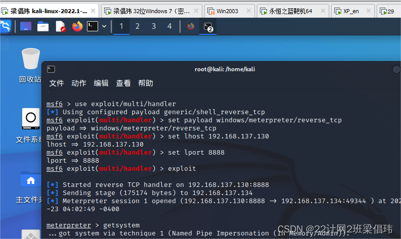 (1)Kali Linux 2主机IP: 192.168.137.130 (如:192.168.244.129)