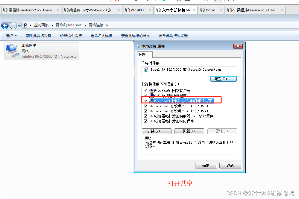 - 开启文件共享功能,共享一个文件夹
