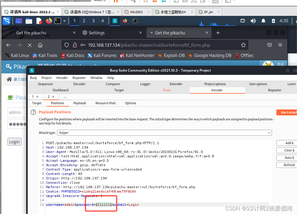- 在burpsuite截获的数据包中标记密码的位置