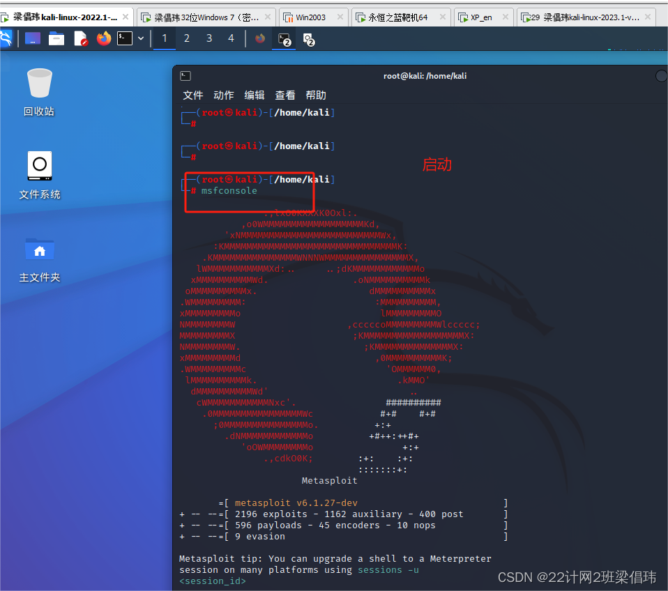 - 启动metasploit: