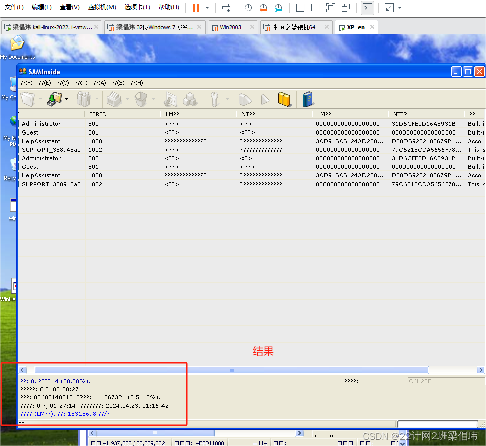 案例:使用SAMInside工具破解Windows XP的用户密码。