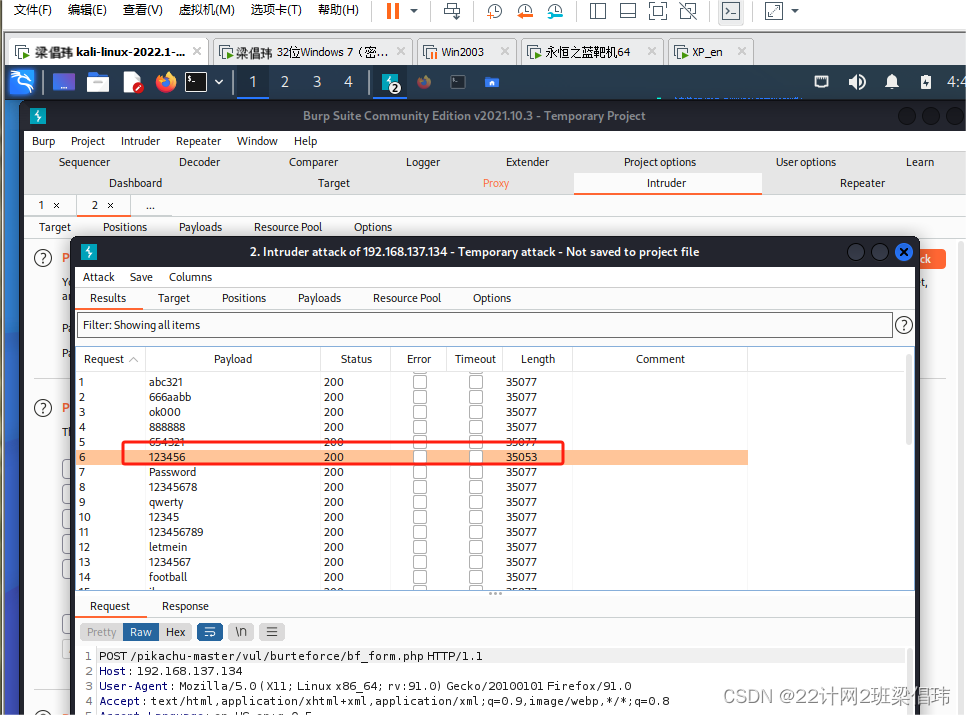 登录界面:http:// 192.168.137.134 / pikachu-master/vul/burteforce/bf_form.php