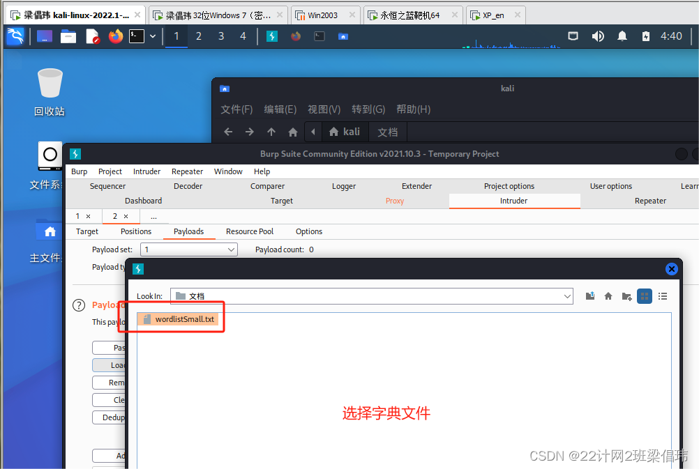 选择payload的类型,加载密码字典文件wordlist.txt(扫描速度太慢,建议将字典文件中前1800删除!)