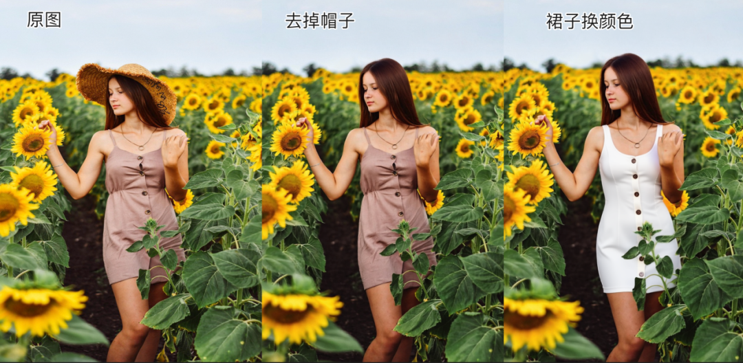 可以看出图片的一致性上保持的不错,就是在裙子换颜色时也稍微改变了裙子的款式(可以不断尝试调整)