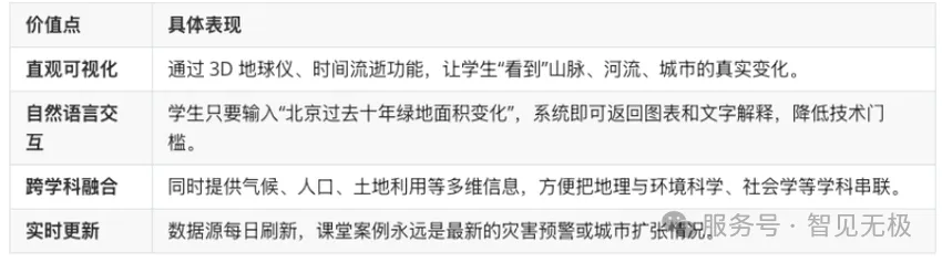 - 个性化学习路径:AI 能根据学生的兴趣和学习进度,自动推荐适合的地理专题和数据集,实现因材施教。