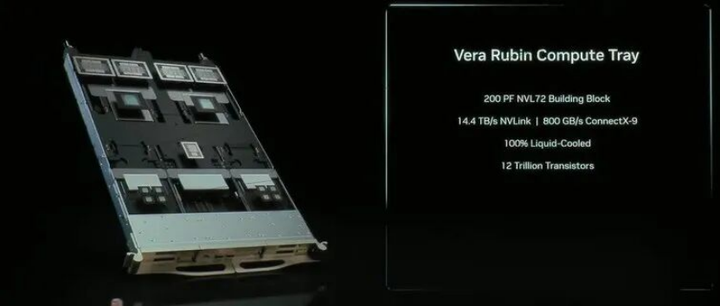 下一代Vera Rubin的首次亮相。这是英伟达第三代NVLink 72机架级超级计算机,彻底实现了无线缆连接。目前,已在实验室完成测试。