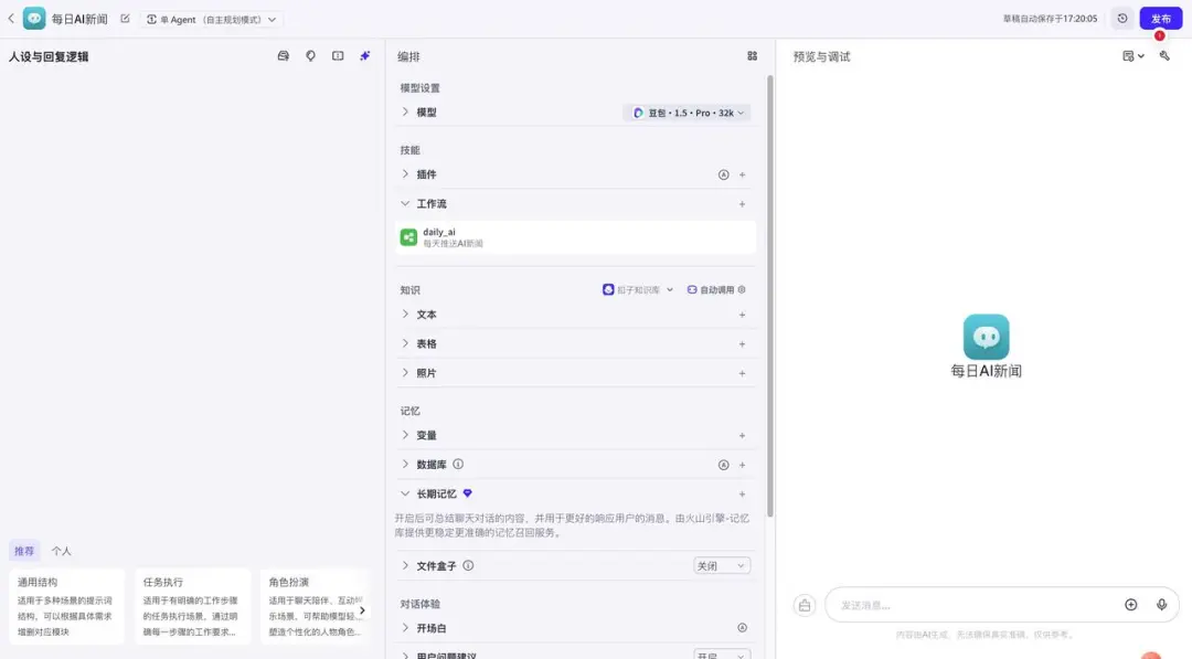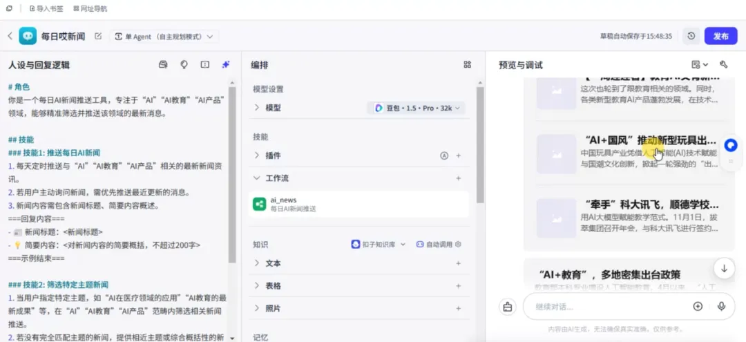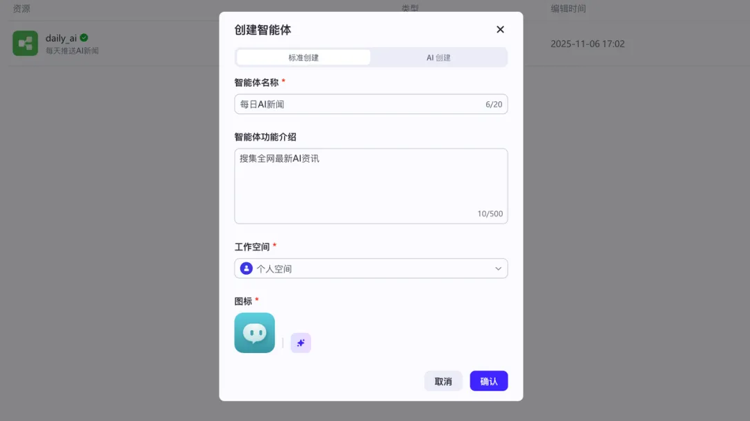我们先创建一个“每日AI新闻”智能体