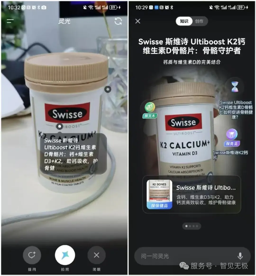 另一个交互体验上的不同是“灵光开眼”,比起deepseek和豆包传统的文字输入的对话方式,灵光更支持用户随时记录,探索世界,所以当点击右下角的👁图标后,它能自动识别你对准的东西,进一步强化了识图功能,比如小编拿手边的物品识别了一下,识别非常快也很准确!