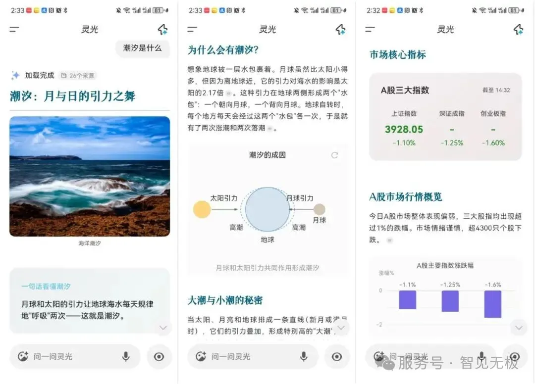 灵光的排版界面更加简单,支持文字,图片,语音三种输入方式,但是输出的回答内容结构清晰排版精美,非常适合拿来给孩子当知识卡片。