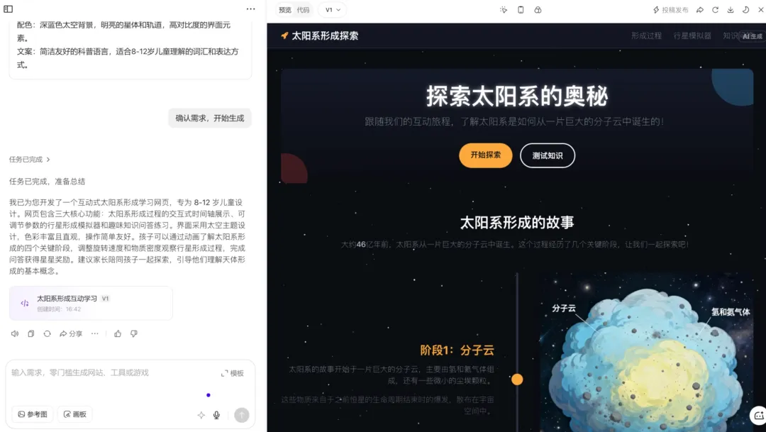 比如生成网页版知识演示内容