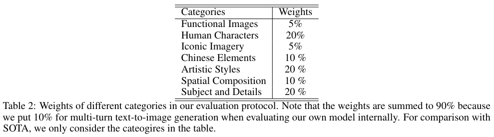 评估维度:在确定评估维度时,参考了现有文献,并另外邀请了专业设计师和普通用户参与访谈,以确保评估指标既具有专业性又具有实用性。具体来说,在评估我们的文本到图像模型的能力时,采用了以下四个维度:文本-图像一致性、AI伪影、主题清晰度和整体美感。对于引起安全问题的结果(如涉及色情、政治、暴力或流血等),直接token为不可接受。