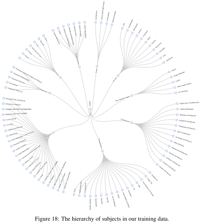 我们发现训练数据中数据类别的覆盖范围对于训练精确的文本生成图像模型至关重要。这里我们讨论两个基本类别: