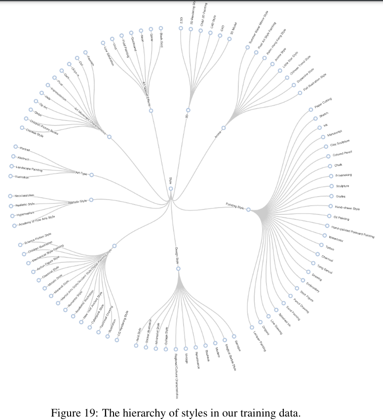 根据数据类别系统将训练数据分类,包含主体、风格、场景、构图等。然后我们调整不同类别之间的分布,以满足模型的需求,并使用类别平衡的数据集微调模型。