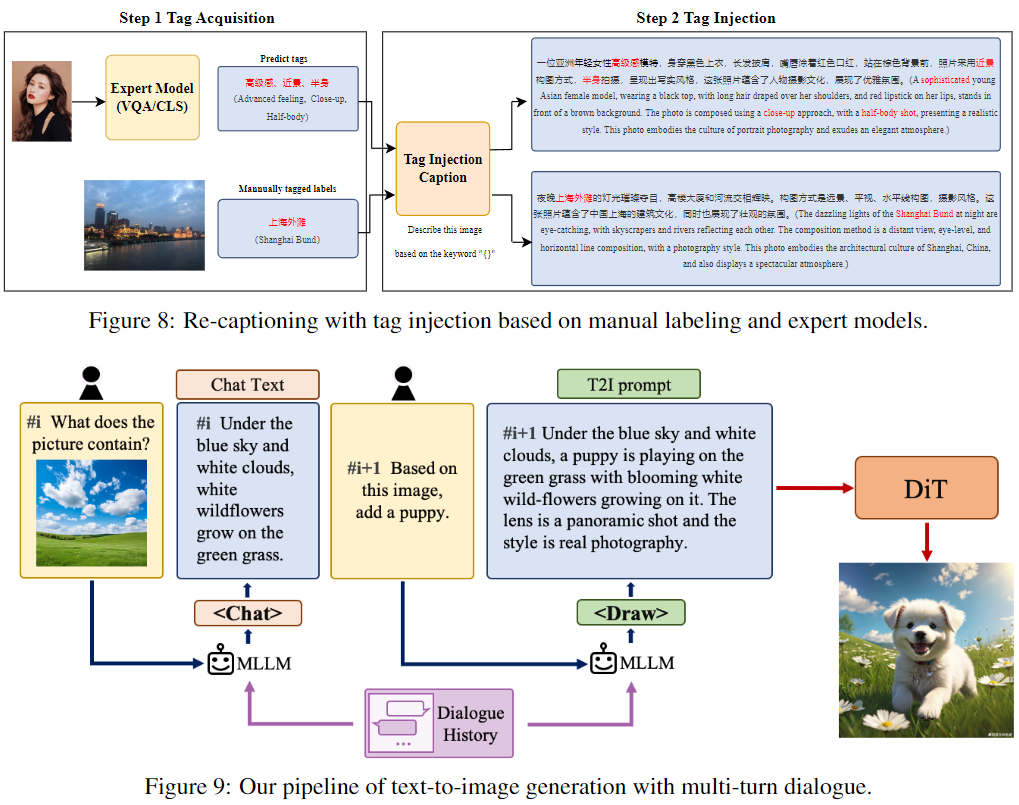 从互联网上抓取的图文对通常是低质量的,为图像提供更好的对应标题对训练文本生成图像模型非常重要。Hunyuan-DiT 采用训练良好的多模态大语言模型(MLLM)来重新生成原始图文对的标题,以提高数据质量。采用结构化标题来全面描述图像。此外,还使用原始标题和包含世界知识的专家模型,以便在重新生成标题时生成特殊概念。