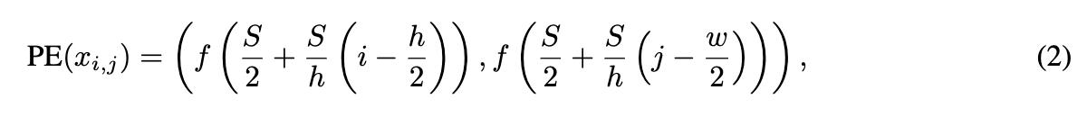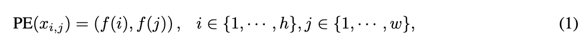 其中,是每个坐标和 的位置编码函数。 是位置 (i,j) 的二维位置编码。需要注意的是,当数据 x 具有不同分辨率时,它们的 h 和 w 会有很大的差异,位置编码也会显著不同。
