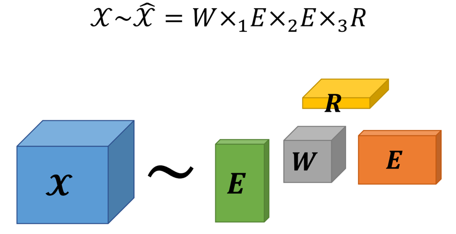 讲者参照Balazevic等人的工作,使用Tucker分解的方法,通过引入一个核张量,使得模型可以建模各关系之间的隐含的联系。