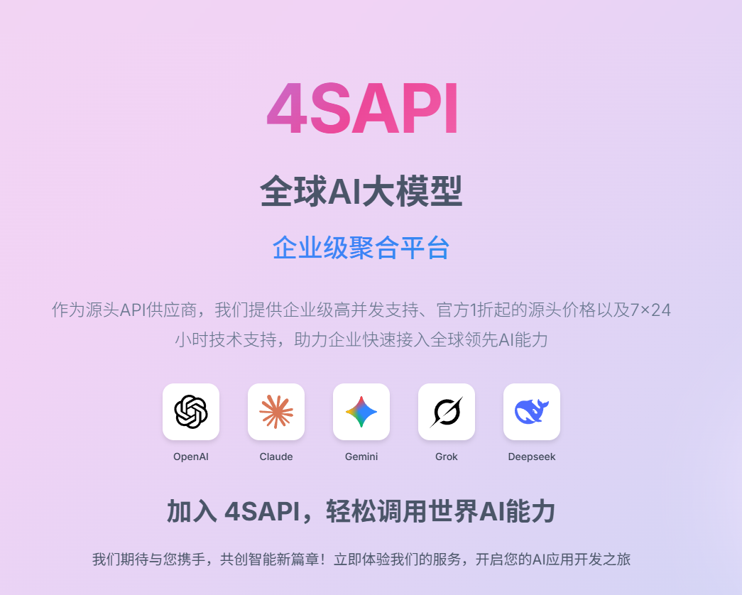 通过4SAPI这类中间层服务接入GPT-5.2,本质上是用极低的配置成本解决了网络调整性和支付能力问题。无论是用于个人项目的快速原型开发,还是企业级的业务集成,这都是目前效率最高的技术路径之一。