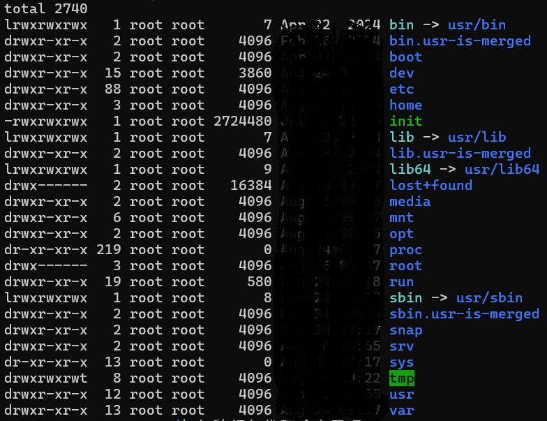 - | 普通文件 | 若有,如 init(权限 -rwxrwxrwx) |