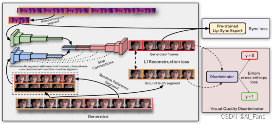 Wav2Lip是一种基于深度学习的音视频同步技术,可以通过分析音频信号和视频帧来实现高精度的唇形同步效果。该算法首先将输入音频转化为谱图,然后在视频帧中匹配最佳的嘴形位置,并根据音频信号在该位置进行唇形变换。