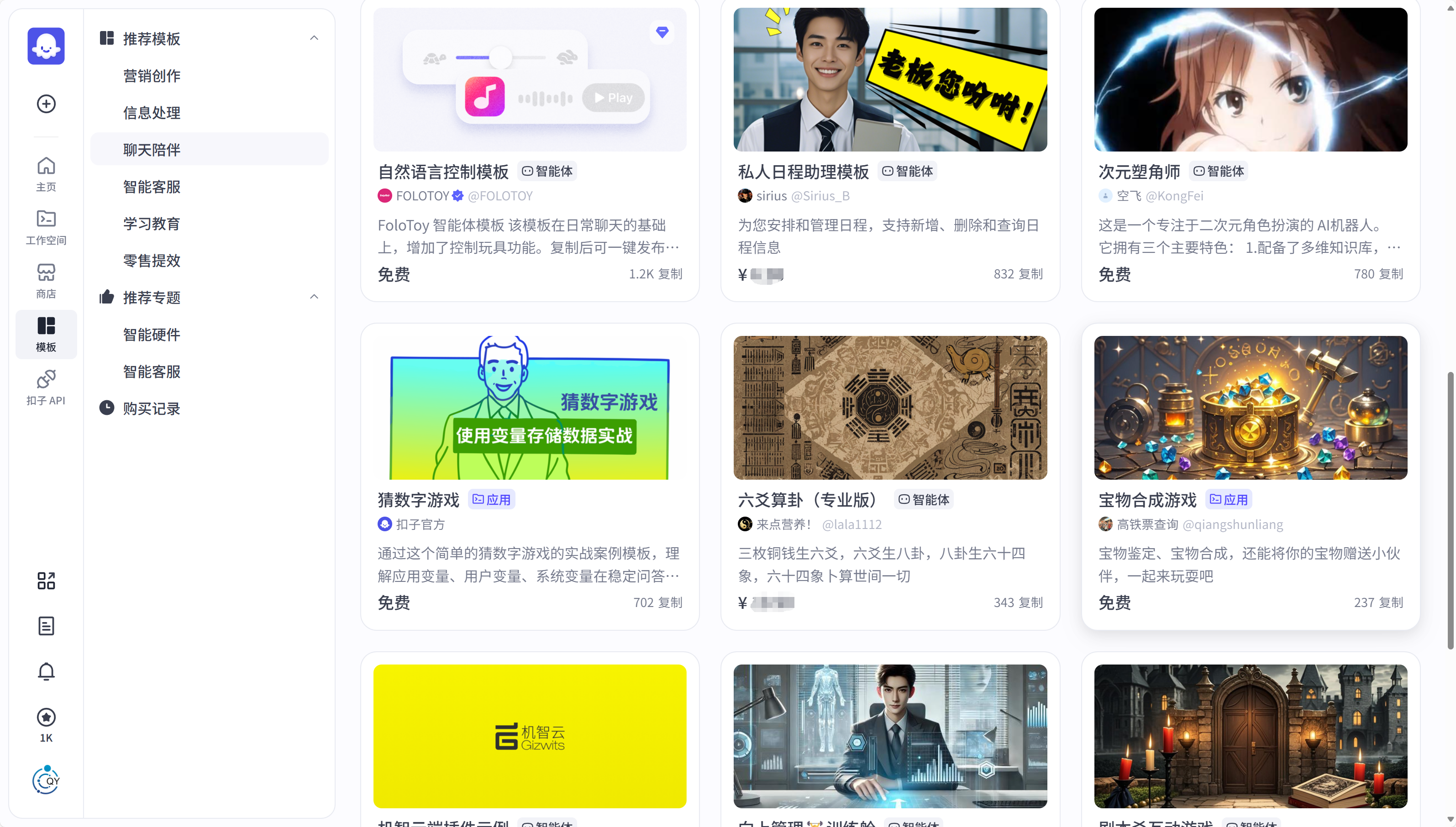 模板收费与定制化服务:开发者可将智能体模板在平台(如coze商城)设置为收费(如9.9元),用户购买后可学习或复用模板;同时,针对品牌需求提供定制化智能体服务(功能、品牌形象适配等),按定制难度收费。