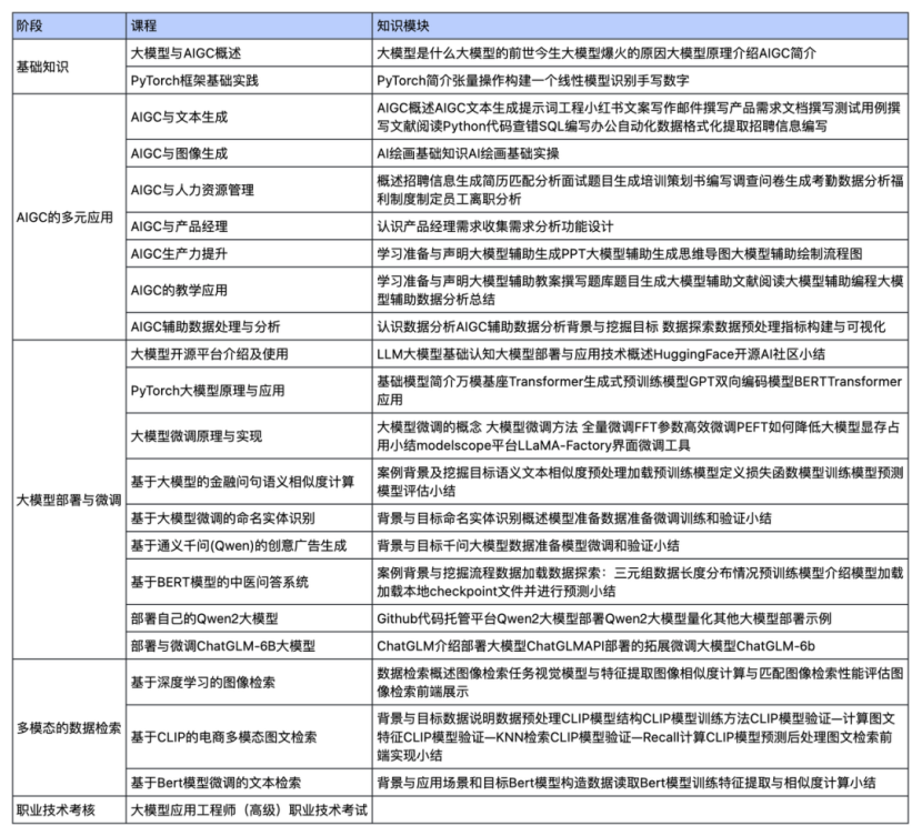 (1)AIGC通识与生产力赋能:课程从大模型基础与PyTorch实践入门,深入AIGC多元应用场景,涵盖文案、图像、人力及产品设计等岗位提效技能,系统教学PPT、思维导图、教案撰写与数据分析。旨在培养善用AI的“超级个体”,全面赋能工作学习,实现生产力跃升。
