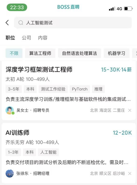 所以,当幼儿园的小朋友都在利用人工智能的bug了,那人工智能的测试工程师还会不火么?看看网上的关于人工智能测试的招聘和薪资,你有点啥想法么?
