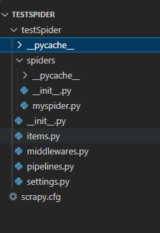 根据文章标题的需求我只需要使用在以上的文件进行编码就行了,加入要使用到其他的接口爬取方法就要去更改testSpider/setting.py里面的设置,如果感兴趣可以参考我之前的文章:使用Scrapy框架爬取V2ex看看程序员中秋节都在讨论啥