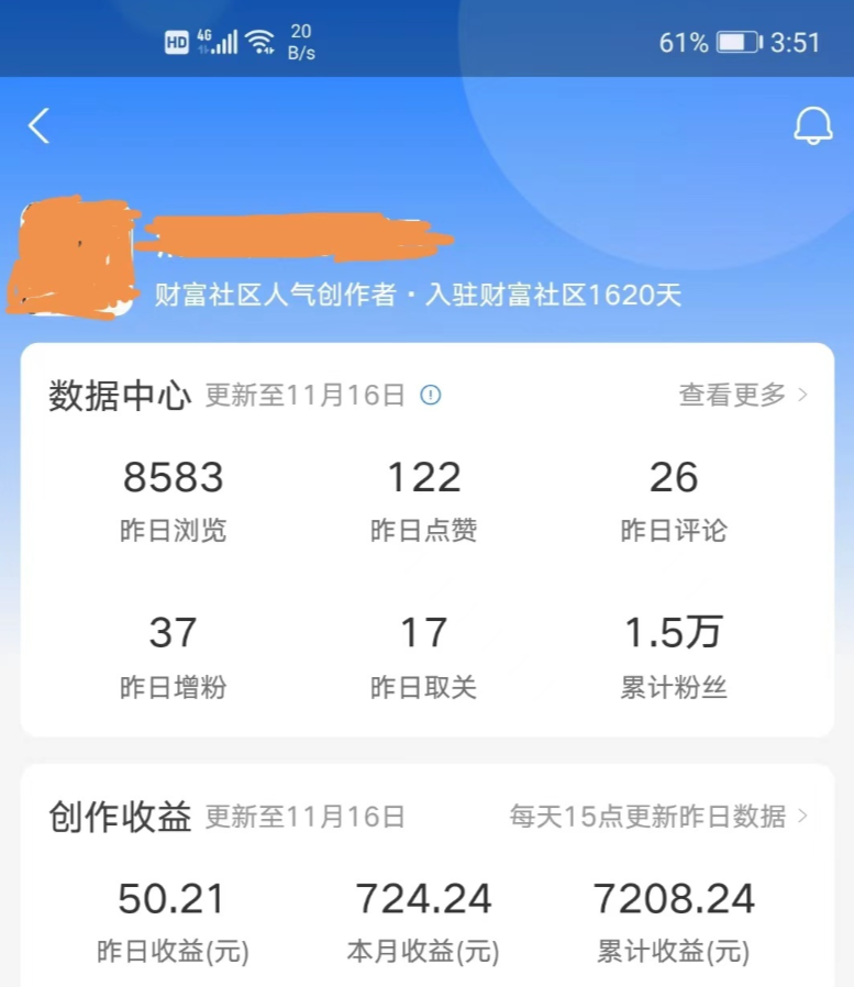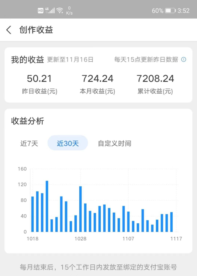 9月到现在,收入7000多块。