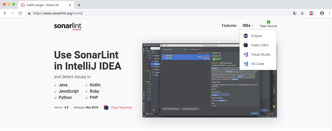 SonarLint 是一个代码质量检测插件,可以帮助我们检测出代码中的坏味道。