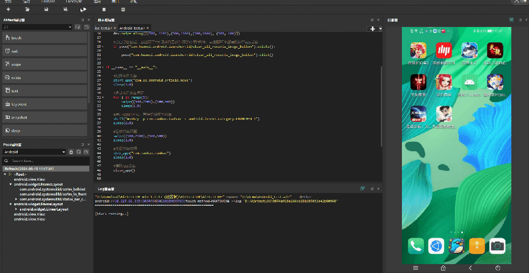 但是以上两种方式,需要将App放置在当前界面上才能进行点击,但是我们可以直接调用Airtest的start_app()的接口,不用担心App放置的位置,可以直接打开App,只需要输入App的包名即可。