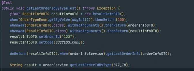 whenNew(OrderInfoDTO.class).withNoArguments().thenReturn(orderInfoDTO);