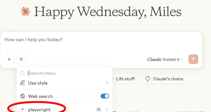 3. 保存文件并重启 Claude Desktop,在聊天窗口中就可以看到Playwright MCP提供的Tools了