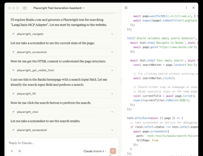 因此,测试人员只需用自然语言描述测试需求,就能由模型完成整个测试流程——从打开页面、执行交互、采集结果,到生成可运行的测试代码,极大降低了测试脚本的开发门槛和维护成本。