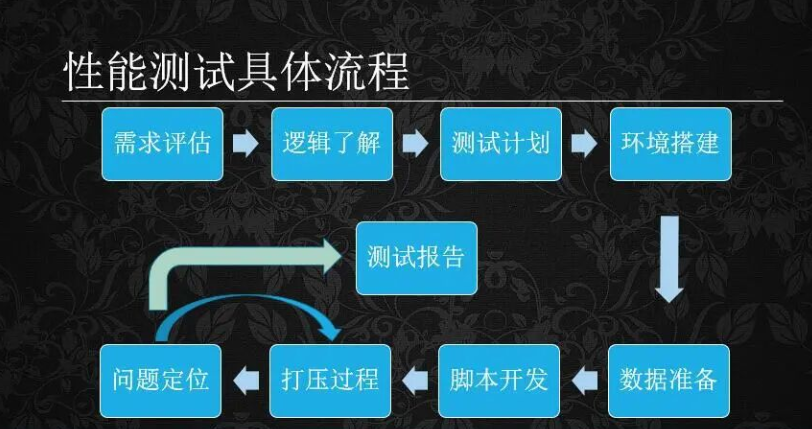 需求分析->测试计划->选择性能测试工具->编写性能测试脚本->执行性能测试脚本->写一个或生成对应的性能测试报告