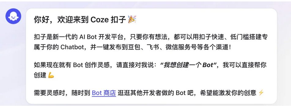 • 它并不推荐你在上面进行聊天对话,而是通过把 Coze 中创建的智能体发布到豆包或者其他的平台,在豆包或其他的平台上面进行对话聊天。