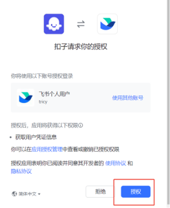 • 注意:第一次使用飞书插件,需要进行飞书的授权。