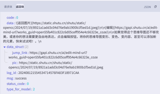 • AI思维导图软件,输入3000字内的内容一键生成导图,支持脑图、逻辑图、树形图、鱼骨图、组织架构图、时间轴等多种结构,助您高效学习与工作。默认返回给用户思维导图的url(pic),和对应的编辑地址(jumpLink),图片内容只支持展示中文。