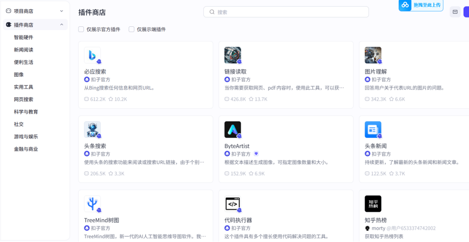 目前,扣子集成了类型丰富的插件,包括资讯阅读、旅游出行、效率办公、图片理解等 API 及多模态模型。使用这些插件,可以帮助你拓展智能体能力边界。