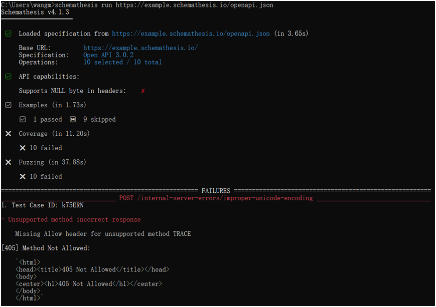 uvx schemathesis run ./openapi.yaml --url http://localhost:8000