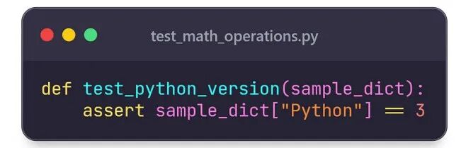 断言是程序员在代码中假定为真的条件或布尔表达式。Pytest 使断言的使用变得轻松易读。断言语句用于在给定条件为真的情况下继续执行。如果 assert 判断为 false,pytest 将停止测试执行,报告失败,并提供深入的回溯信息。让我们扩展一下前面的例子: