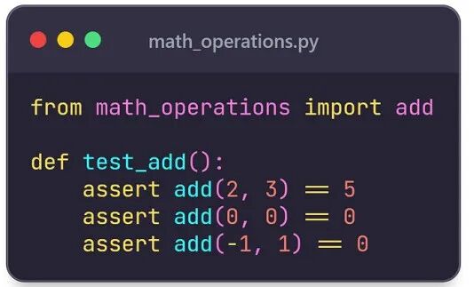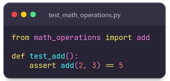 要测试该add函数,请创建一个名为的新文件test_math_operations.py并定义一个函数test_add: